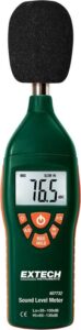 Instrumento para medir niveles de ruido en ambientes mineros, ayudando a prevenir riesgos auditivos del personal.