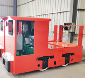 Locomotora eléctrica de batería recargable para el transporte horizontal de materiales y mineral en minería subterránea. Operación silenciosa, sin emisiones y adecuada para espacios confinados.